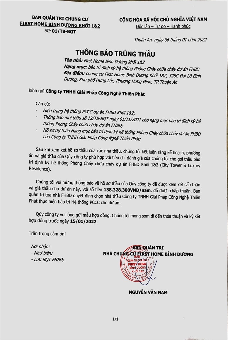 TRÚNG THẦU HẠNG MỤC BẢO TRÌ PCCC