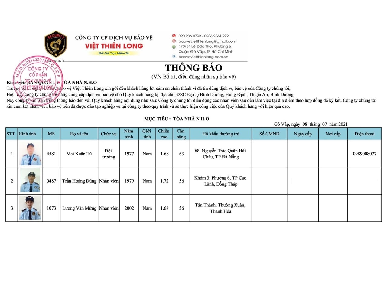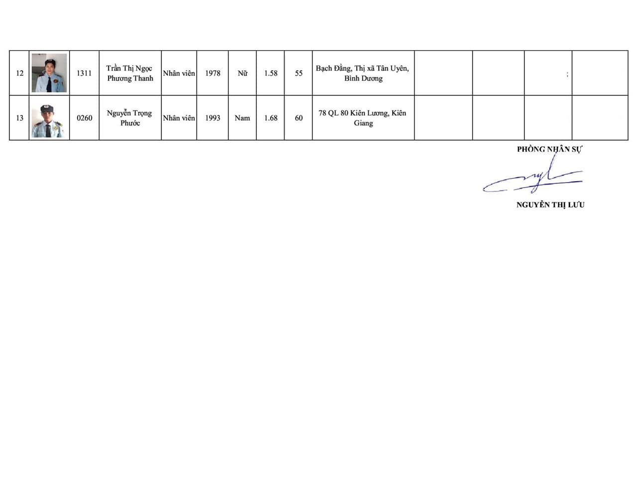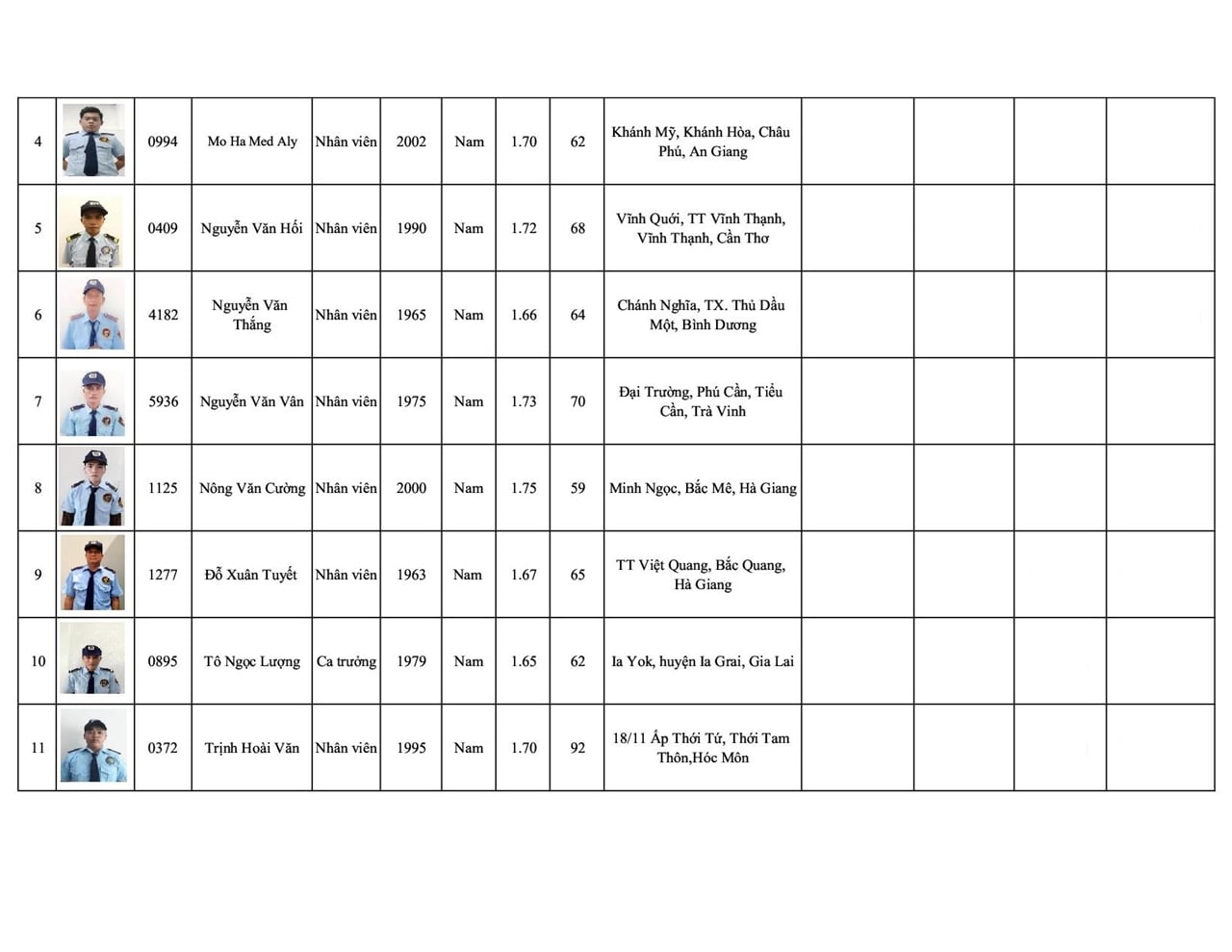DANH SÁCH NHÂN SỰ ĐỘI AN NINH 08.07.2021